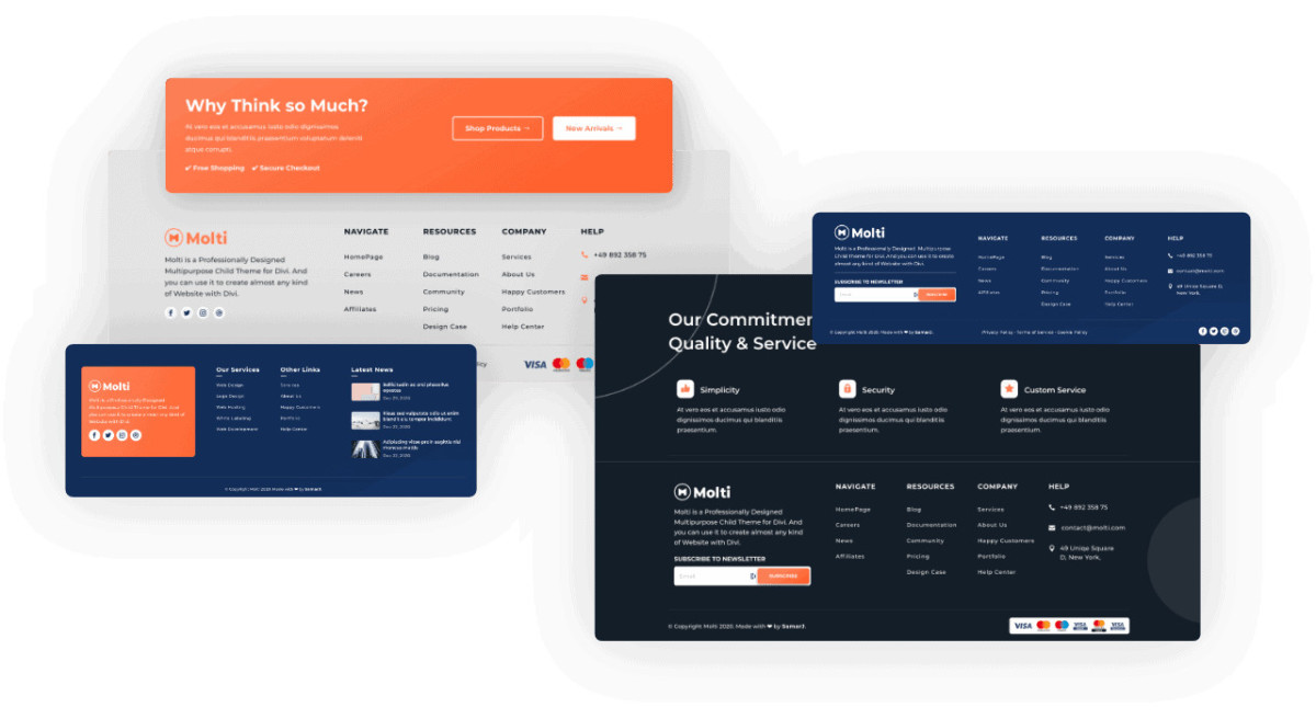 With Molti Child Theme you don’t only get many amazing Designs and Functionalities It also provides you 10 Awesome Footer Designs that fit any kind of website.