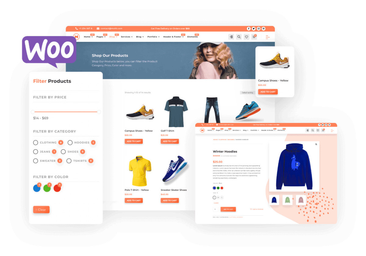 The Molti Ecommerce provides you many stunning Design for your next Ecommerce site/Store with WooCommerce. With many hover effects, Stunning Functionalities and never before seen features will make you say WOW!