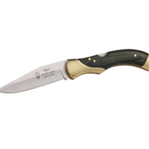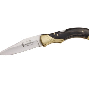 Navaja bloqueo cachas de micarta negra y virola de alpaca con bandera de España.