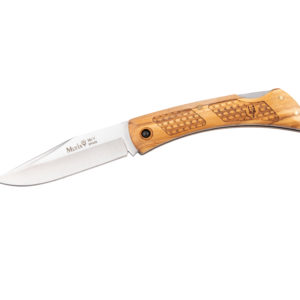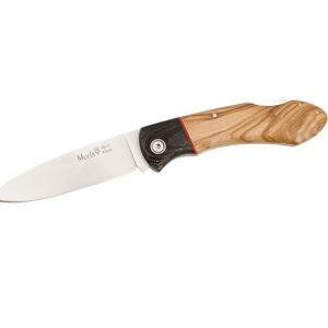 Navaja con bloqueo trasero y cachas de madera de olivo.